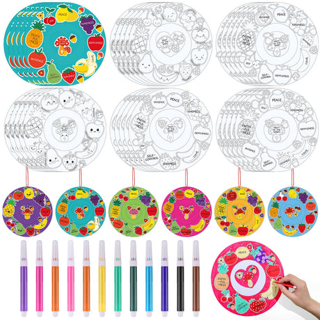 Fun Express Fruit of The Spirit Coloring Wheel - Makes 12 - DIY Religious Craft for Kids
