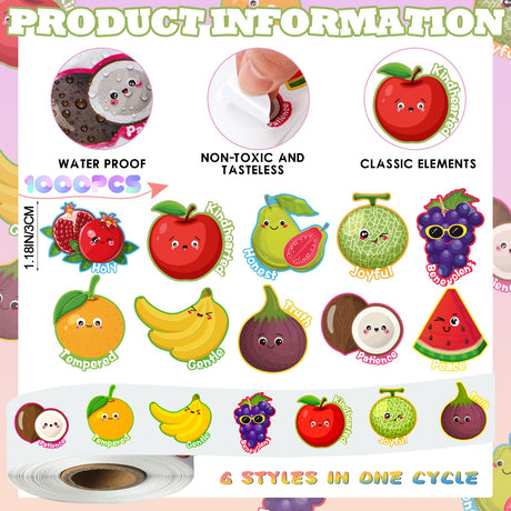 Fruit of The Spirit Scented Sticker Roll - Bulk Set of 100, 1 Roll - Rewards and Party Supplies